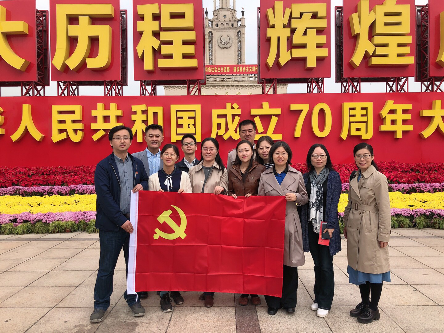 2019年10月11日上午,在公司党委的组织下,公共外语党支部党员教师们赴北京展览馆参观了“伟大历程 辉煌成就——庆祝中华人民共和国成立70周年大型成就展”。展览重点突出展示中华人民共和国成立70年来中国人民在中国共产党领导下创造的辉煌历史业绩,党员教师们认真学习了从建国初到今天的重要事件,观看了一个又一个的辉煌时刻,一次又一次为新中国波澜壮阔的发展历程和辉煌成就所感动。七十年风雨征程,七十年艰难探索。公共外语党支部的老师们通过参观学习,深刻认识到自己肩负的重大历史使命,表示要在今后的教学科研中更加努力奋斗,为中华民族的伟大复兴培养有用之才,用实实在在的工作和成绩来报效国家,在祖国教育的新征程上继续阔步前行。