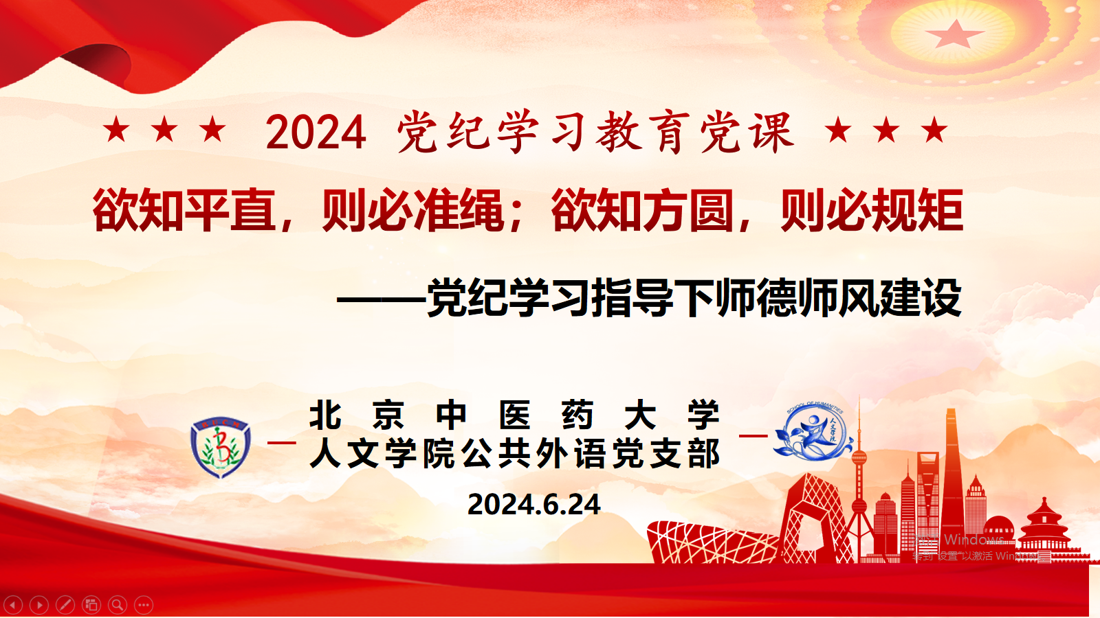 4月24日,陈子杰支部书记为yl7703永利公共外语党支部讲授党纪学习教育专题党课“党纪党课:欲知平直,则必准绳;欲知方圆,则必规矩——党纪学习下的师德师风建设”。公司党委委员陈锋经理、孔祥国副经理和研究生支部书记陈秋云老师出席了本次活动。