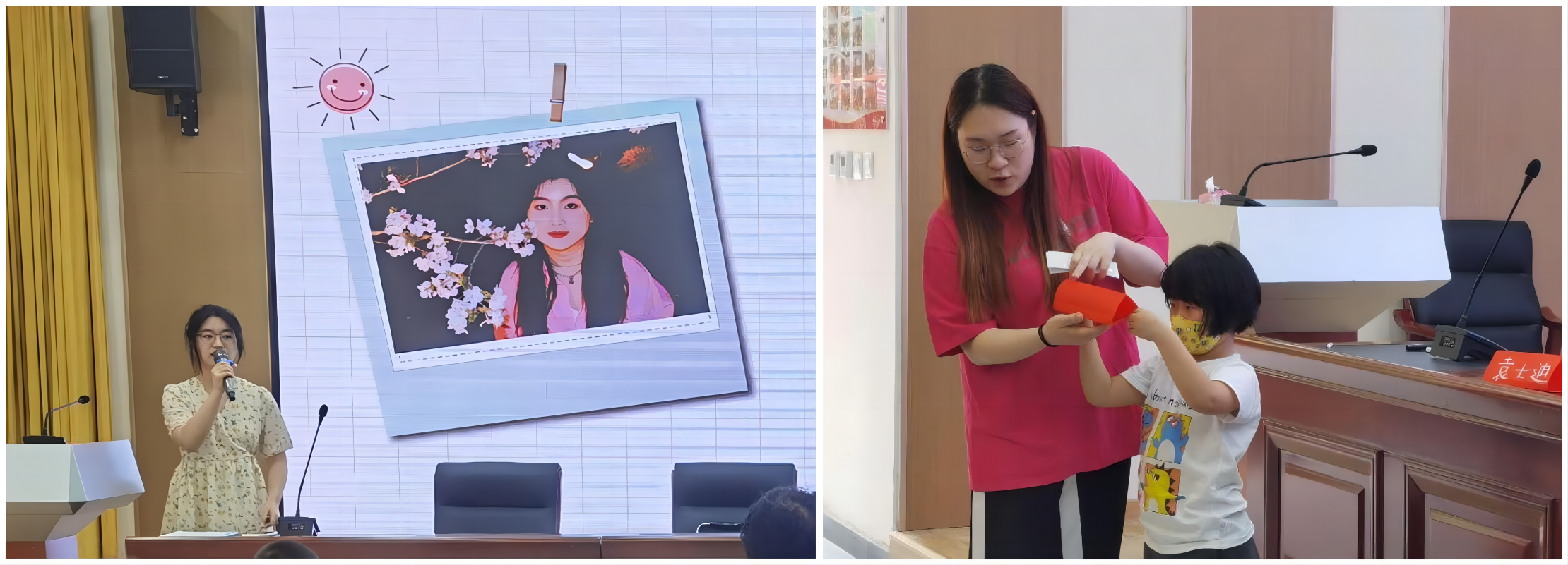 上午8时许,志愿者提前来到海逸半岛社区党建中心布置场地,连接设备,组织签到。930分,活动正式开始。主讲人支部党员袁士迪,与助教彭梦婕、陈柯言进行了自我介绍,拉进了与小朋友们的关系。随后带领大家制作姓名卡片。小朋友们在助教和家长的帮助下,动手制作DIY 立体姓名卡片,之后以逐一展示成品的方式向大家做自我介绍。