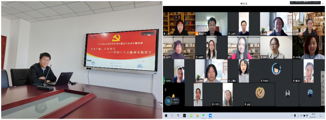 陈子杰书记带领老师们一起学习党的二十大精神。陈子杰书记从党的历史发展角度进行了深入讲解了十年来、五年来, 和当前中国共产党的成就与任务。陈子杰书记鼓励老师们要真正实干,发表研究论文,推动个人现代化,和公司现代化,也推进学科、公司发展。会后,有党支部的老师表示党课讲得非常好,将二十大报告精神与老师们的日常工作相结合,启发很大,并与陈子杰支部书记就所学内容进行了深入交流。