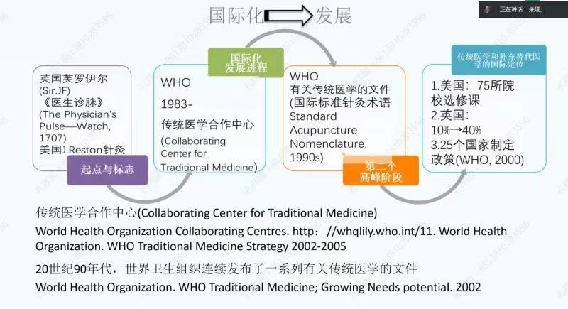 讲座伊始,朱教授介绍了中医药在海外传播的盛况,强调了中医药国际传播中翻译人才培养的重要性。然后,朱教授从中医翻译的史学视角为勾勒了中医药海外传播从两汉兴起到近代发展的历史沿革。