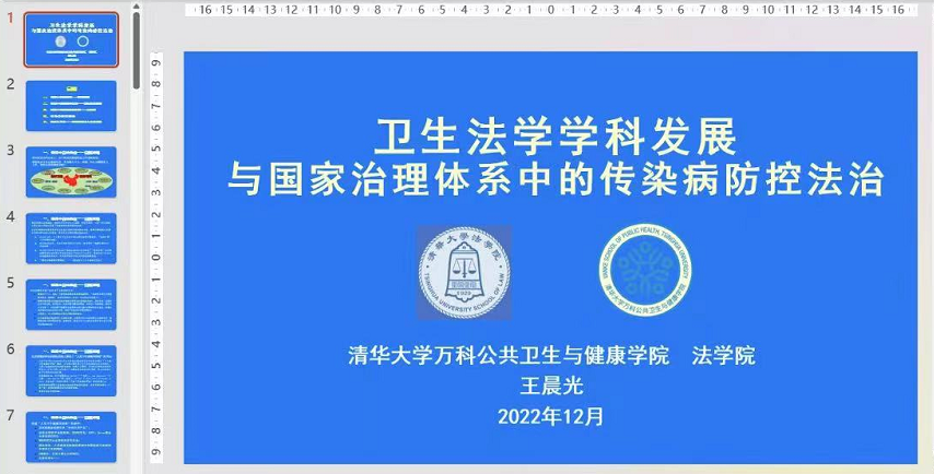 2022年12月2日晚上,yl7703永利邀请著名法学专家王晨光教授为法学专业师生带来“卫生法学学科发展与国家治理体系中的传染病防控法治”专题讲座。本次讲座是2022年yl7703永利教师培训系列专题讲座之一,以线上会议形式进行。yl7703永利经理陈锋教授、副经理孔祥国教授及近百余师生在线聆听并互动交流,讲座由法律系杨逢柱主任主持,陈锋经理致辞。