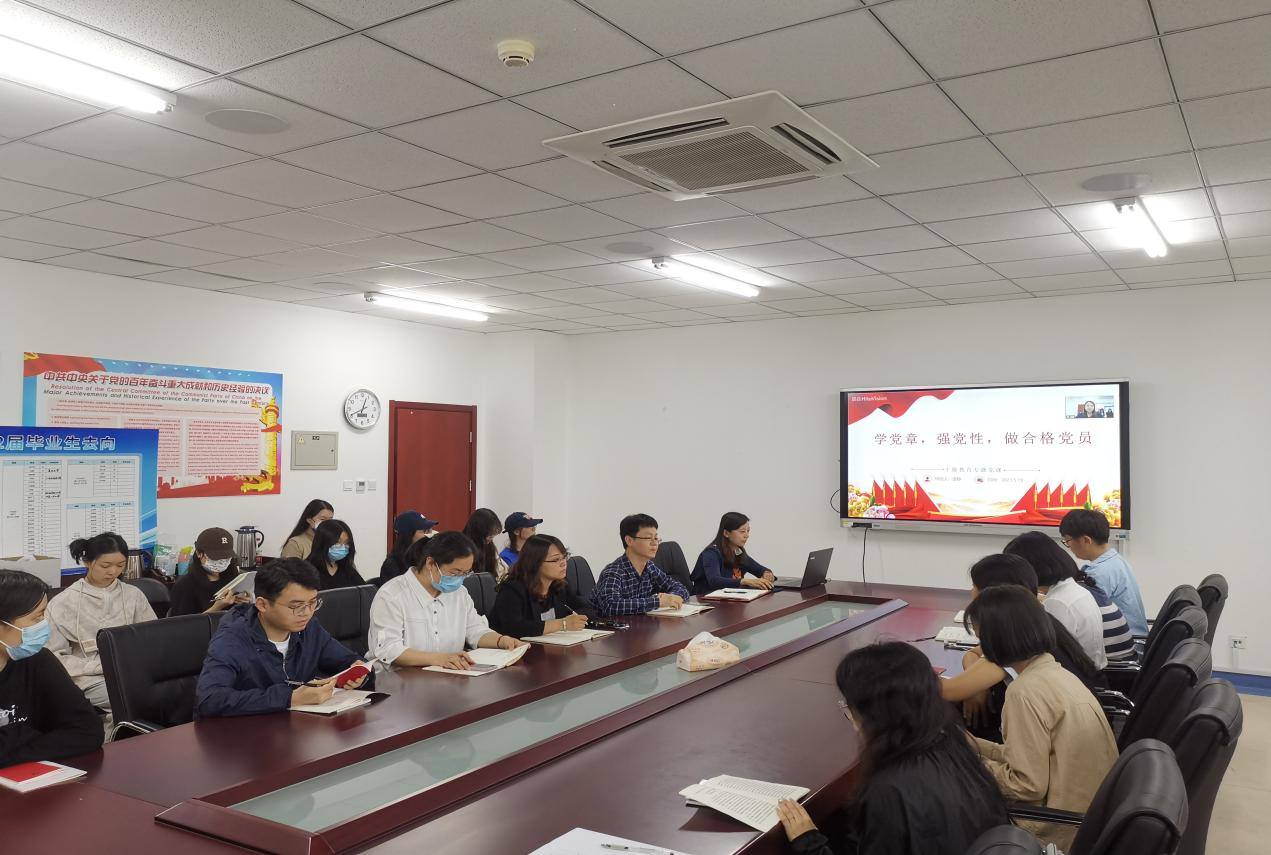 活动伊始,谭静副书记指出,认真学习党章、严格遵守党章,是加强党的建设的一项基础性经常性工作,也是全党同志的应尽义务和庄严责任,开宗明义地强调了党章学习的重要性与必要性。随后,公司党委委员、行政综合支部联系人杨逢柱老师进行了发言。他认为,学习习近平新时代中国特色社会主义思想,在思想引领上具有重要作用,一方面为教学工作提供强有力的理论支撑,另一方面有助于进一步武装头脑、辨清方向,非常具有理论价值与指导意义,建议各位同志继续深入开展学习与研究。随后,研究生党支部书记陈秋云强调,开展主题教育以来,已根据公司与公司的安排做了学习安排和部署,希望大家认真学习、认真体会、学有所获。