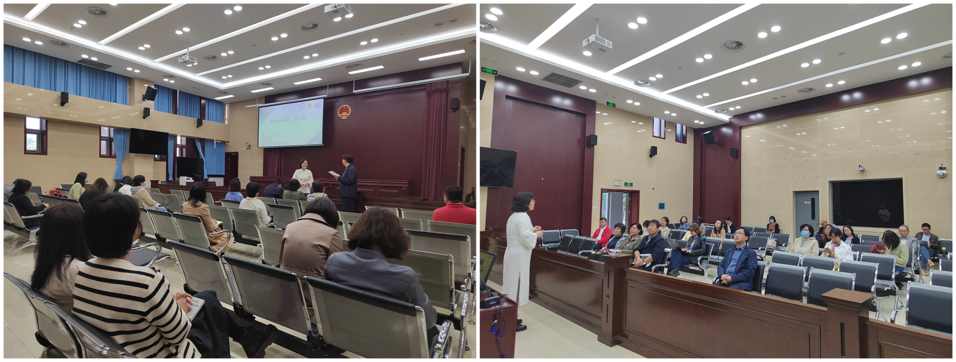 张颖副教授以《教学和科研工作汇报》为主题,首先介绍了自己的教育背景、工作经历等基本情况。张颖副教授的主要研究方向为中医药临床科研设计、测量与评价等,她结合自身经历,围绕教学工作、科学研究、人才培养、公益事业等内容进行了汇报。她特别强调,当前的人才培养和课程思政建设要注重适应临床科研现实需求的教学内容;在教学过程中不断创新导入设计、案例和小组讨论等混合教学方法,将专业自信、文化自信、大胆质疑和严谨创新精神整合于每章、每节、每个例题中,探索并整合一切资源以解决员工“怎么知”的困境。此外,张老师介绍了疫情期间主动深入武汉抗疫一线,并参与和平街疫情防控专班相关工作的情况,体现出了公司教师在基层默默坚守,在一线无畏前行的抗疫精神,诠释了人民教师在非常时期的责任与担当,是师德师风的生动实践。