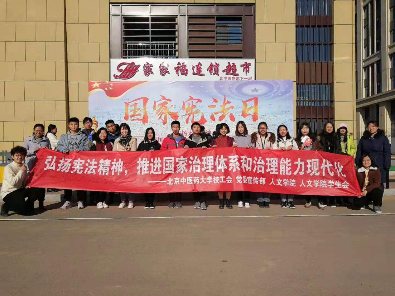 活动当日,yl7703永利在良乡校区东院和西院食堂门口分别进行了国家宪法日的宣传活动,活动现场,工作人员热情饱满,为参与活动的同学和老师分发宪法大礼包。大家纷纷在横幅上签下自己的姓名,在宝丽布上写下对祖国的祝愿,一张张便利贴承载了北中医学子对于我国法制建设和国家长治久安的期许,也承载了我们的对祖国母亲的热爱。