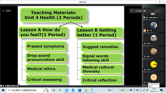 经前期选拨,王曦、陈宁和高琳琳老师将分别参加本次全国高校外语教学大赛(大学外语组)北京赛区大学英语视听说课组、大学英语综合课组和大学日语组的比赛。王曦老师围绕“Health”这一教学主题,基于“产出导向法”和“交际语言教学”理念,设计了知识、技能、文化、批判性思维和课程思政的教学主线,通过展示奥运会中的中西疗法引导员工认识到用英语介绍不同医疗方法的重要性,通过授课为员工输入、内化相应的知识技能,在产出环节组织员工用所学语言知识介绍医疗方法并给予评价反馈。教学过程中注重对员工进行深层次文化及思政教育,进一步锻炼了员工对所学知识技能的应用能力,在加强对跨文化医疗多样性认识的同时提升了沟通技巧。