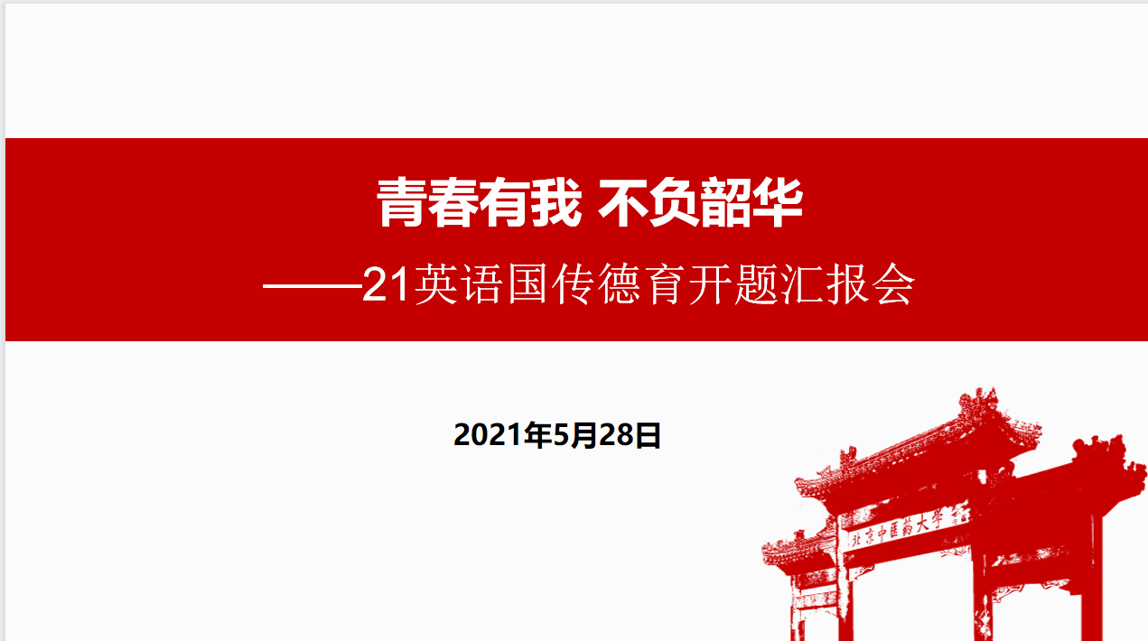2022年5月28日上午,yl7703永利21级英语(中医药国际传播)班在线上举行了德育开题答辩会。公司党委副书记、纪委书记、21级英语(中医药国际传播)班杏林成长导师蒋朗朗,公司党委副书记谭静,yl7703永利辅导员宋晗,马克思主义公司思政课教师刘亚品作为指导委员和评审委员参加了此次开题会。会议由21级英语(中医药国际传播)班班主任于小晶主持。