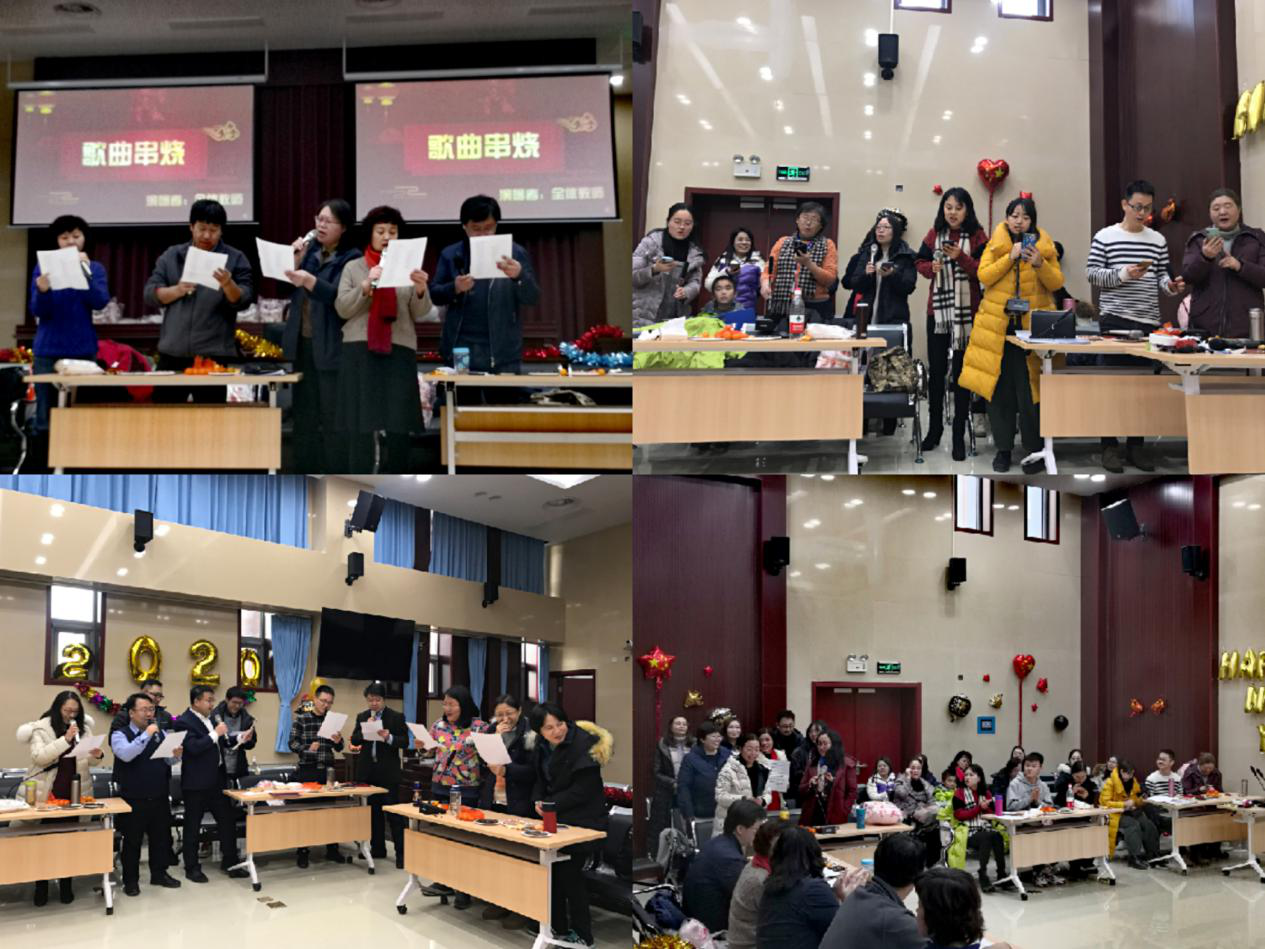 联欢会以歌曲串烧开场,由院领导演唱的《鼓浪屿之歌》、行政工会的《龙的传人》、英语系的《没有共产党就没有新中国》、公外部的《我和我的祖国》和法律系的《相亲相爱一家人》,点燃了联欢会的气氛。