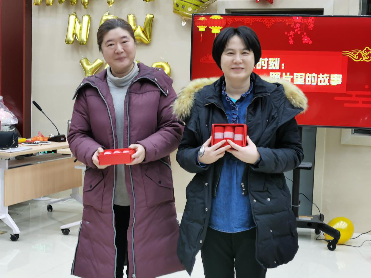 联欢会最温馨的环节是照片里的故事,大家翻看23张老照片,这其中有公司历史性纪念照、有教师个人的代表性老照片,由主人公讲述照片背后的故事,看着照片中一张张青涩的面孔,共同唤起温馨的回忆。
