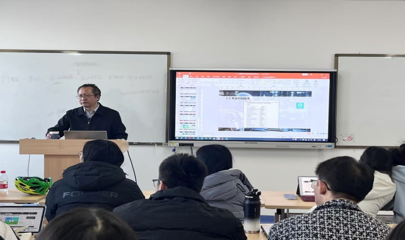 讲座伊始,崔教授简要回顾了翻译技术的发展历程,介绍了翻译实践中的九类翻译技术以及TransWAI等常用工具,包括各自的用途、适用阶段和简要说明。在此基础上,崔教授详细论述了人工智能在翻译实践译前阶段的具体应用,包括字符识别技术(OCR)、语音识别技术(ASR)和术语识别技术(ATR),并分别演示了FineReader在OCR翻译实践案例中的应用,TransWAI在ASR中的应用,文心一言和ChatGPT在ATR中的应用。最后,崔教授提出人工智能时代的翻译学习要以语言为中心,增强项目管理能力和行业敏感性,细化专业方向,掌握技术软件。