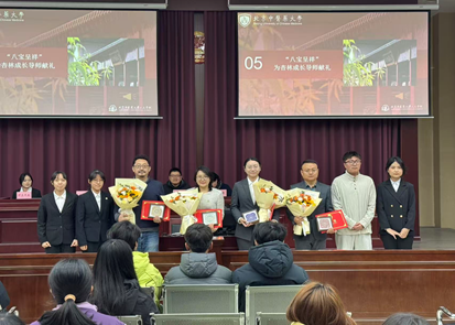 为表达谢意,2025级本科班员工代向四位导师赠送了由同学们亲手制作、寓意感恩与承诺的礼物“八宝呈祥”以及饱含感激之情的鲜花。