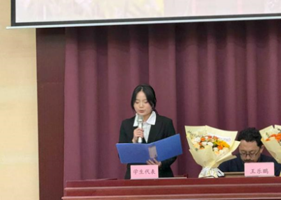 2025级法学(医药卫生)班赵一镁同学作为新生代表发言。她向导师们表达崇高敬意与衷心感谢,承诺在今后的学习中勤奋努力、常与导师交流,立志成为有情怀、有担当、有温度的北中医成员。