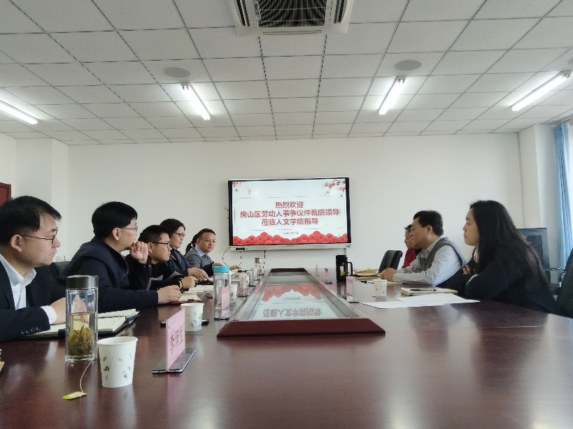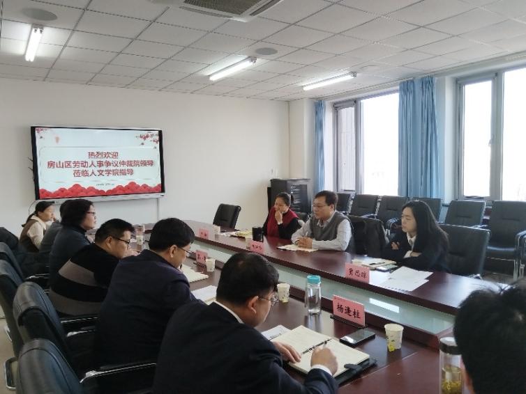 随后,房山区劳动人事争议仲裁院陈华铃经理介绍了房山区劳动人事争议仲裁院基本业务情况,并围绕双方拟开展的合作内容进行了详细说明。