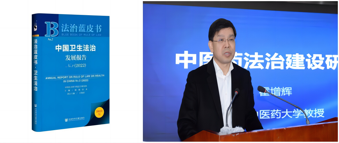 2023年3月27日,中国社会科公司法学研究所与社会科学文献出版社联合举办的“2023年法治蓝皮书首场发布暨新时代法治发展研讨会”在中国社会科公司法学研究所举行,会议发布了《中国卫生法治发展报告No.2(2022)》(《卫生法治蓝皮书》)。公司霍增辉教授的重要研究成果《中医药法治建设研究》入选《中国卫生法治发展报告No.2(2022)》并应邀出席并做主旨报告。