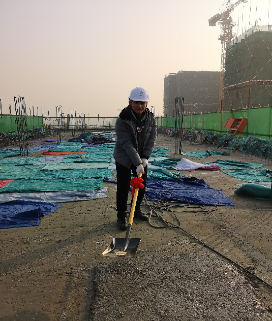 9时18分,主持人宣布封顶仪式开始,各位领导、教师代表和员工代表走上楼顶,随着最后一方混凝土缓缓注入大楼顶部的钢筋结构当中,锅炉房项目顺利封顶。
