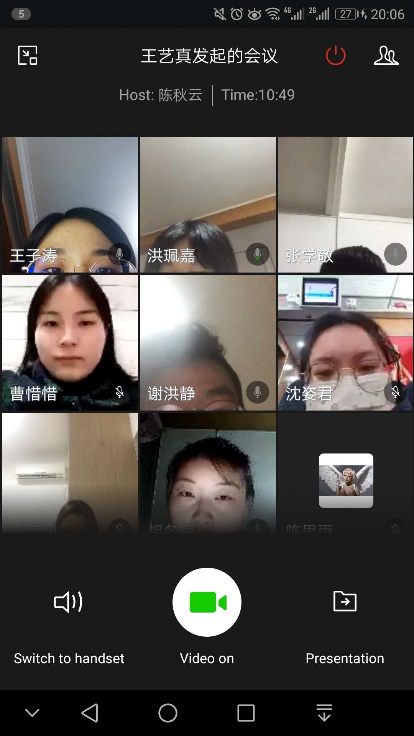 2月22日晚上,2016级英语(中医药国际传播)班28名同学在班主任陈秋云老师的主持下,召开微信线上会议。