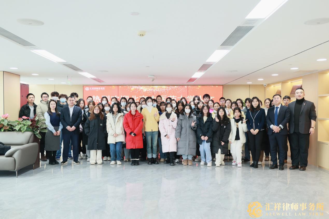 2023年12月13日下午,公司党委副书记谭静,党委委员、法律系主任杨逢柱,2023级法学班主任宗倩倩与2023级法学专业同学前往北京汇祥律师事务所进行参观交流。双方围绕专业团队建设、法学人才培养、员工实习实践、就业岗位推荐等方面开展了深入交流,并举行了共建“法学人才培养实践基地”揭牌仪式。