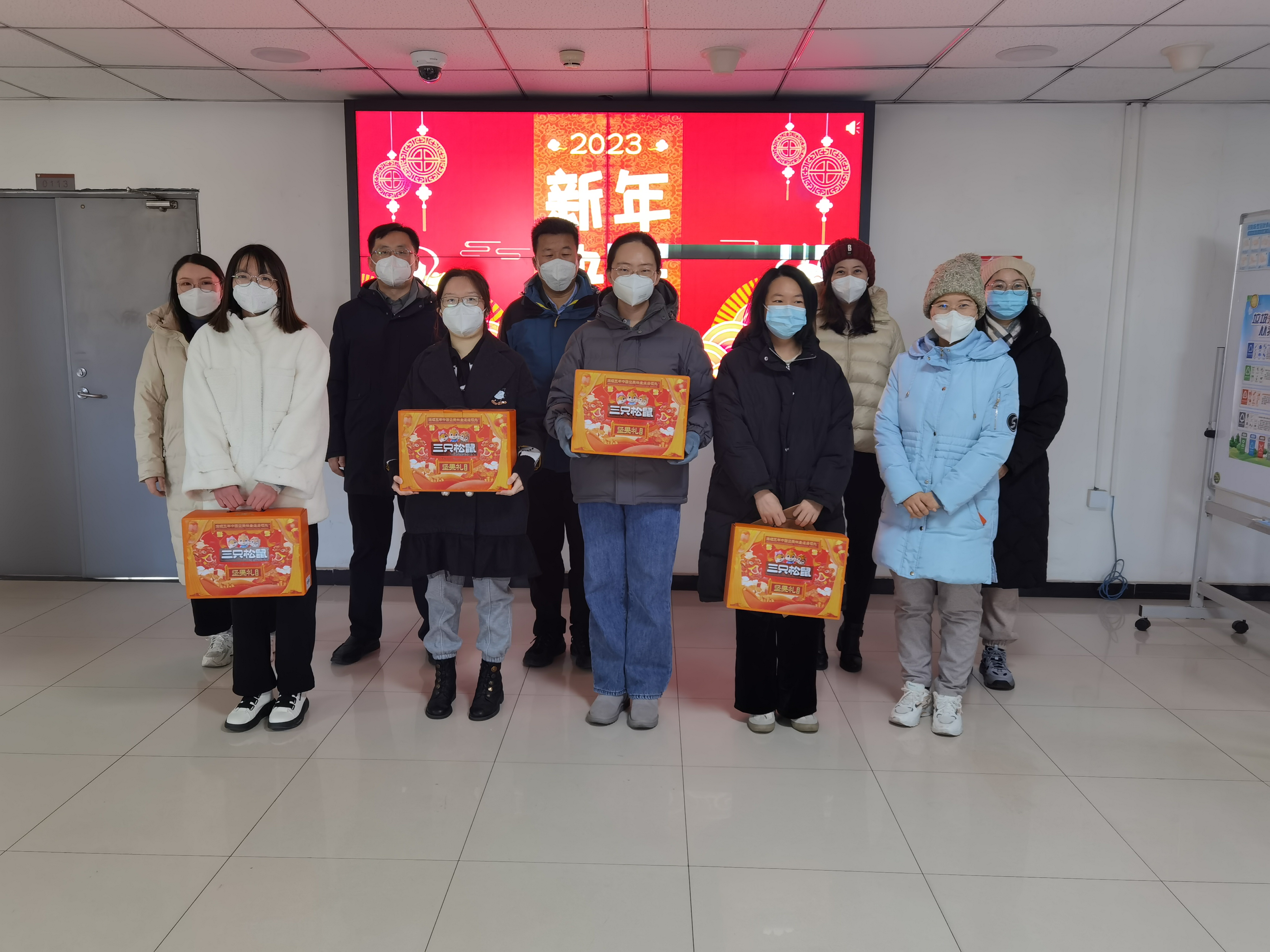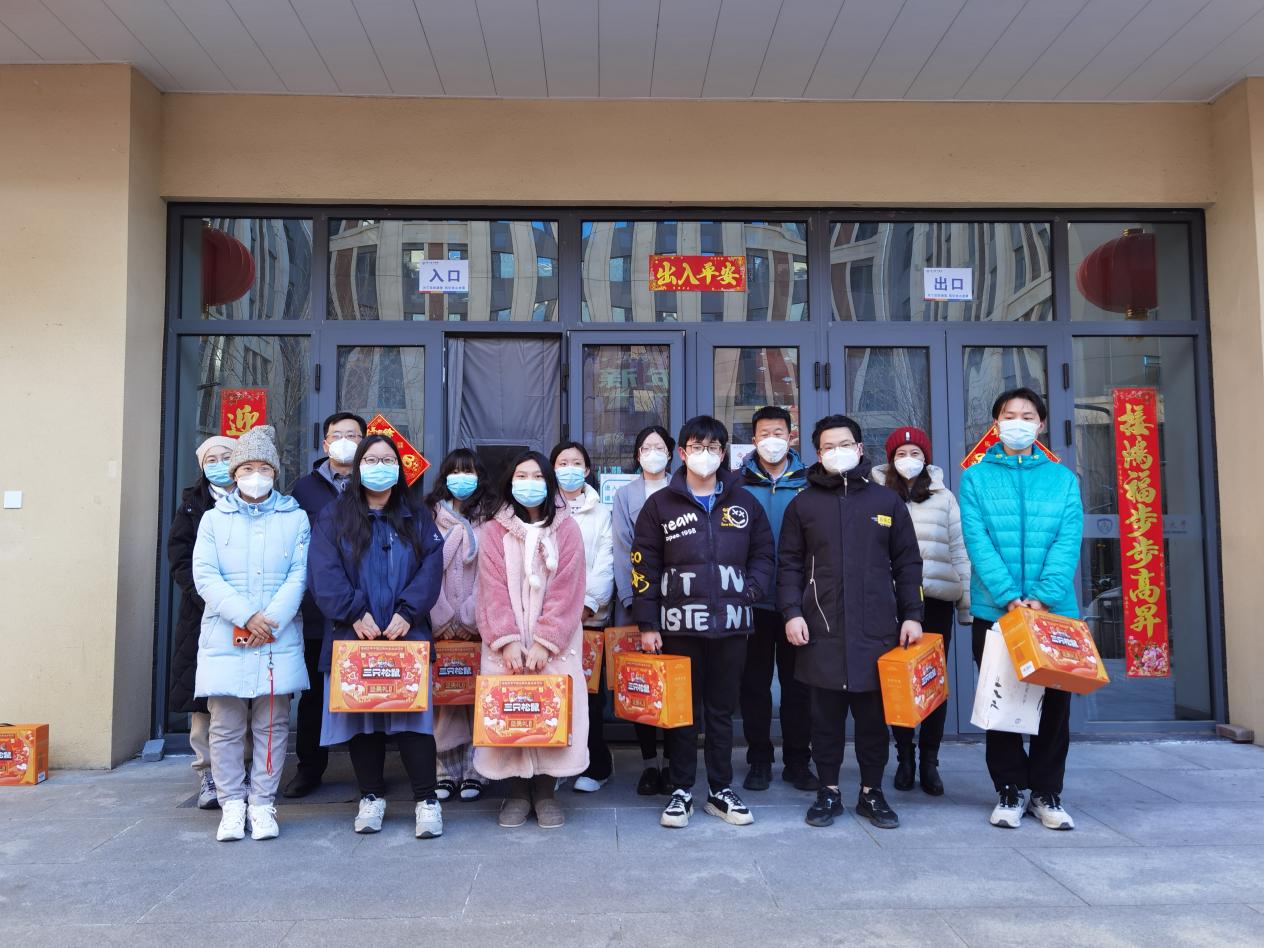 各位领导和老师代表yl7703永利为留校员工发放了公司精心准备的春节大礼包。yl7703永利副经理陈子杰、孔祥国,党委副书记谭静向同学们致以新春的祝福,希望同学们在校留宿期间可以加强锻炼,规律作息,保持身心健康,利用公司的资源做好规划,努力学习,提高自我,以更加饱满的精神面貌迎接2023年的到来。