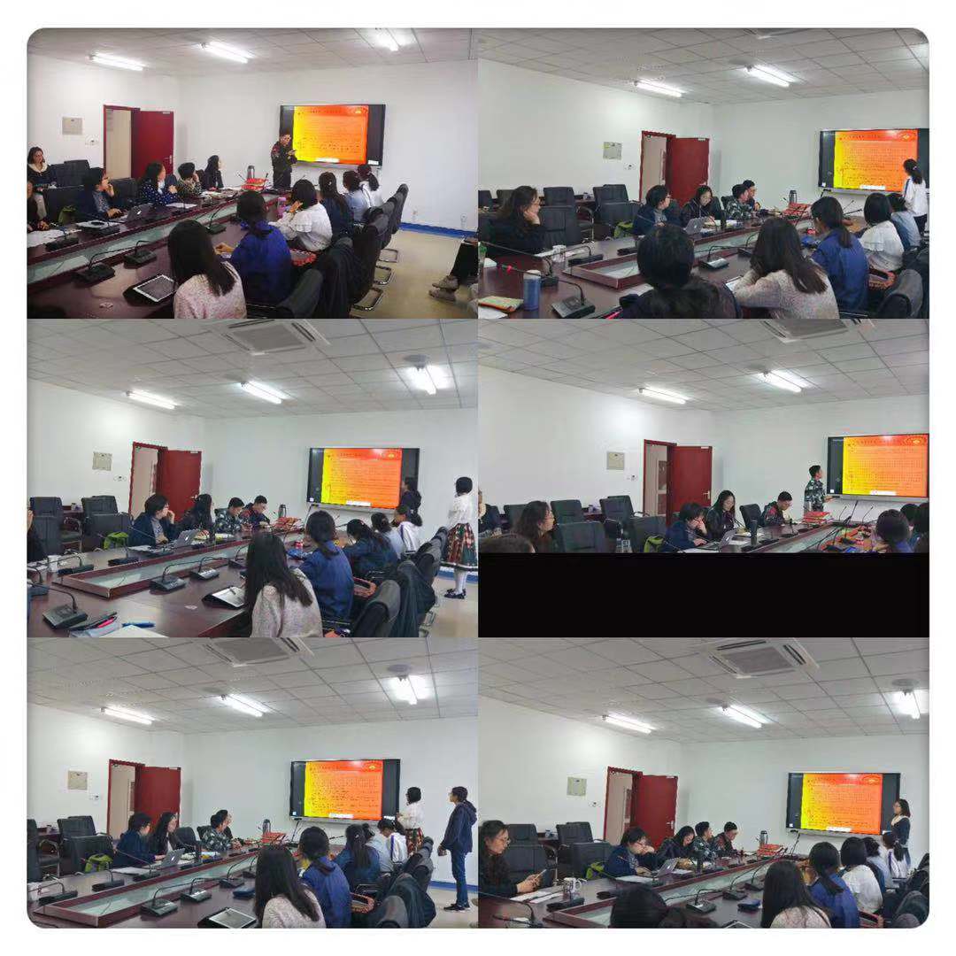 10月23日下午14点30分,yl7703永利英语专业教工党支部与英语专业员工党支部在良乡校区yl7703永利楼305会议室成功开展“不忘初心,牢记使命”主题教育师生交流学习会系列活动之“平语近人”—习近平总书记用典英文翻译赏析及讨论。公司党委书记杜伟、经理陈锋、英语系教工党支部书记李晓莉、英语专业员工党支部书记宋晗以及两个支部全体师生党员参与了本次活动,活动由李晓莉主持。