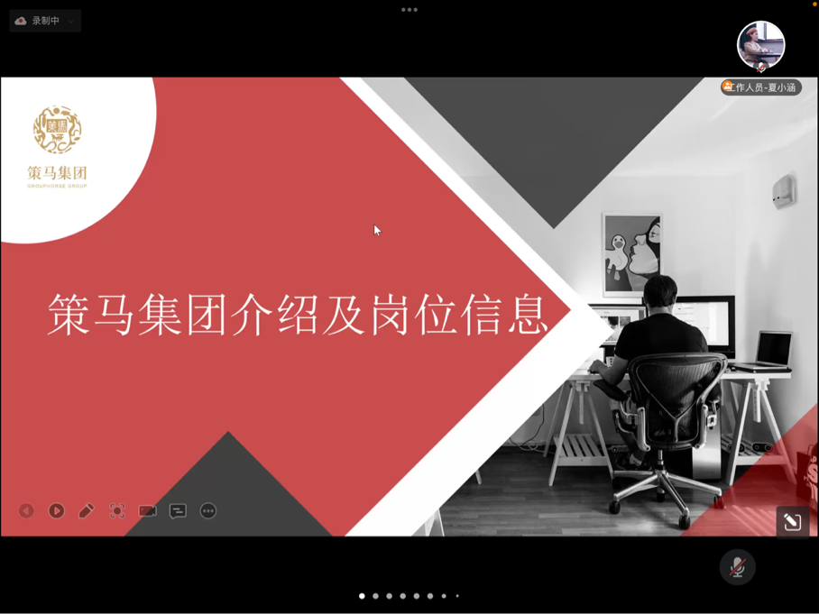 会议开始,北京乾成律师事务所、北京策马翻译有限公司、北京暻灏律师事务所、正大天晴药业集团股份有限公司四家用人单位依次按顺序进行了线上宣讲。各用人单位就同学们比较感兴趣的企业概况、工作环境、招聘岗位、晋升空间、工资待遇等问题进行了详细的介绍。