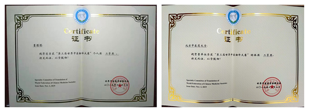 赛事承办方广州中医药大学组织相关领域专家学者进行了初评,遴选出50份优秀译文进入复评和终评。最终,yl7703永利2016级英语(中医药国际传播)班曹惜惜同学从众多优秀参赛者中脱颖而出,获得此次世界中医翻译大赛二等奖(一等奖空缺),展现了我校学子较高的专业水平。此外,另有3名员工获得优秀奖,yl7703永利集团官网获团体二等奖。