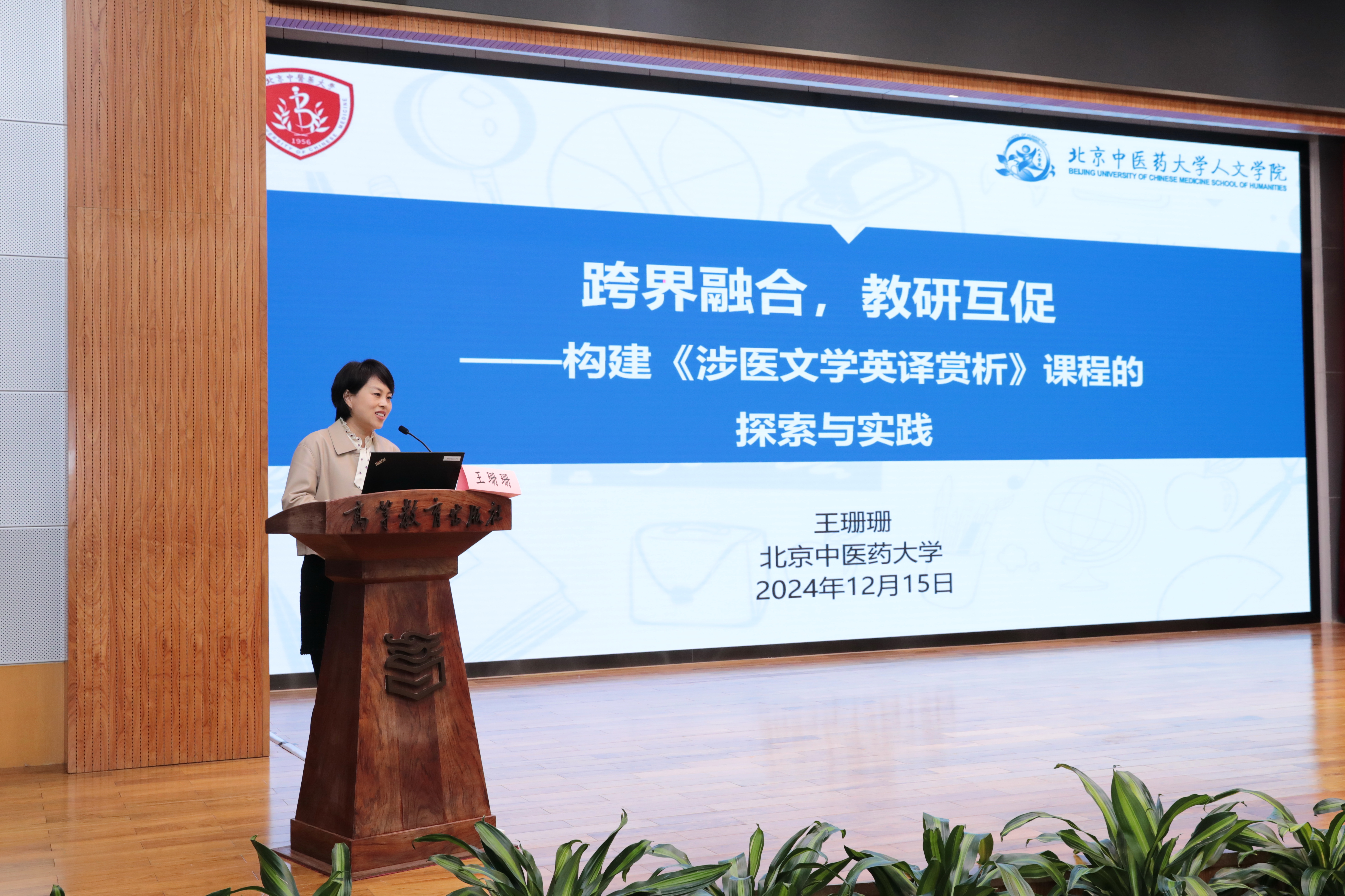 2024年12月15日,在北京市高教学会大学英语研究分会第21届理事全会上,yl7703永利王珊珊副教授主讲的《涉医文学英译赏析》课程荣获“大英好课奖”,同时王珊珊副教授作为获奖代表,应邀发表了题为《跨界融合,教研互促——构建<涉医文学英译赏析>课程的探索与实践》的主旨报告,分享了自2017年以来构建该课程的心路历程。
