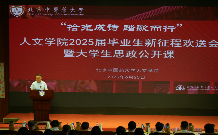 yl7703永利陈锋经理在毕业生寄语时希望2025届毕业生不仅要珍惜人生最珍贵的一段旅程——大学时光,更要牢记 “勤求博采,厚德济生”的校训,以语言为笔,以文化为墨,以法治为信仰,为中医药事业发展和健康中国战略贡献力量。