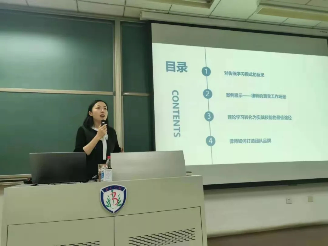 在讲座期间,李冰律师以鲜活的例子,娓娓道来,向全场同学介绍了律师的真实工作环境和职责,阐述了她对传统学习模式的反思,理论学习转化为实战技能的最佳途径,以及律师如何打造团队品牌等问题的思考。在场的同学们认真聆听,积极活跃提问,整场讲座气氛热烈。